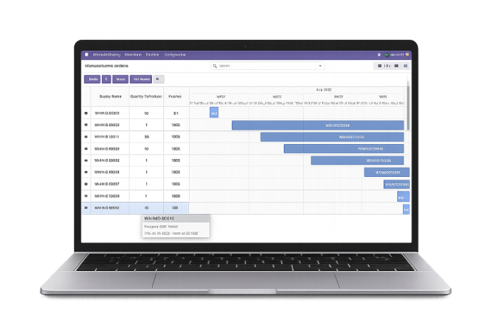 Whether managing batch production, multi-stage manufacturing, or high-volume operations, the Odoo Gantt App introduces clarity, stability, and structured control into the production lifecycle—helping manufacturers move from reactive scheduling to proactive execution management.