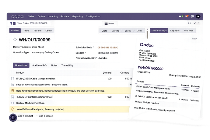 Unorganized delivery orders create confusion on the warehouse floor. Structure your picking operations with sections and notes β€” directly inside Odoo.